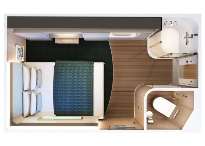 T1 - Vnútorná kajuta Studio Single 9 m². Max 1 osoba. 10,11,12. paluba - stred. 2 908 € 1 454 € za osobu